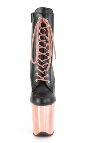 FLAMINGO-1020 Black Vegan Leather & Rose Gold Ankle Boots
