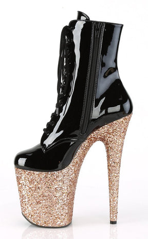 FLAMINGO-1020LG Black Rose Gold Glitter Boots