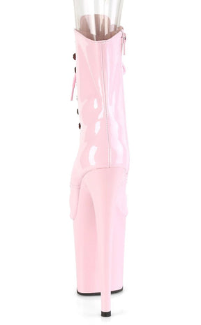 Dip yer toes into boundless beauty in the FLAMINGO-1021 boots! These booties feature a peep toe, lace-up front and side zip for easy on/off. The upper and platform are coloured in soft baby pink, perfect for all you pastel pixies out there!