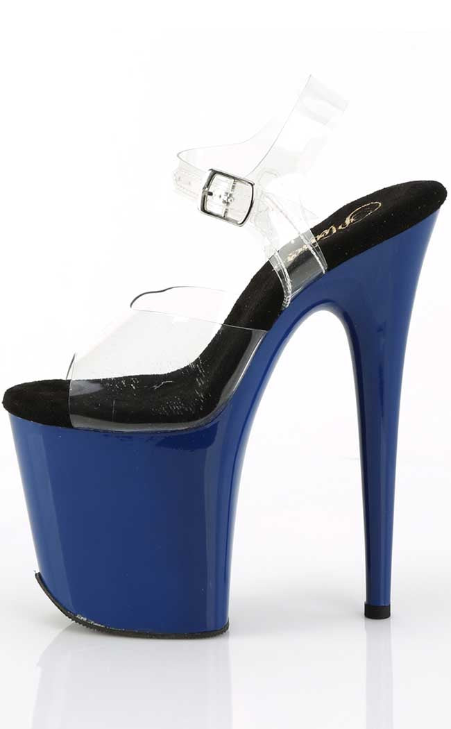 FLAMINGO-808C Clear & Royal Blue Platform Heels