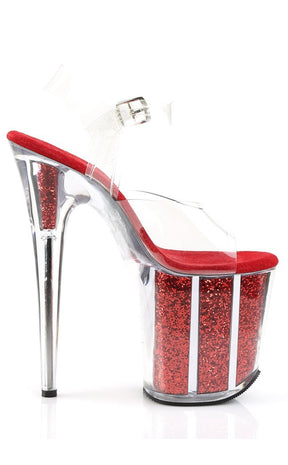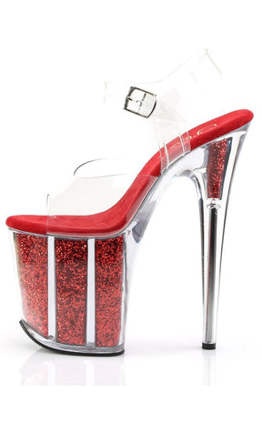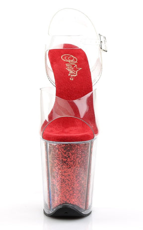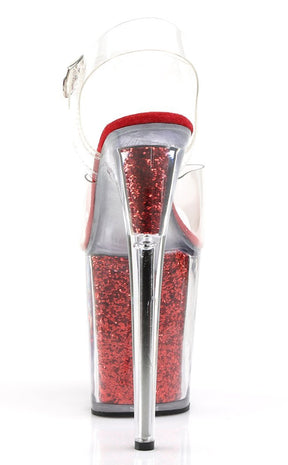 FLAMINGO-808G Clear & Red Glitter Platform Heels