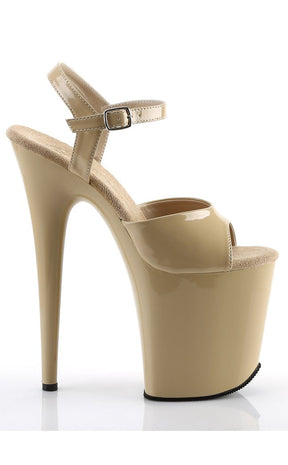 Cream nude-toned pole-dancing shoes with a sky-high 8-inch stiletto heel and 4-inch platform.