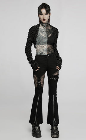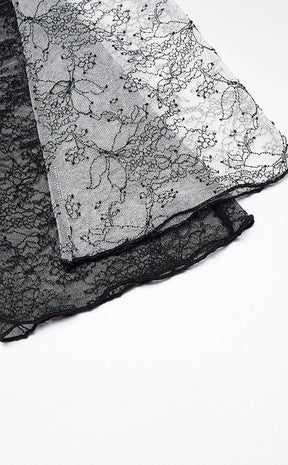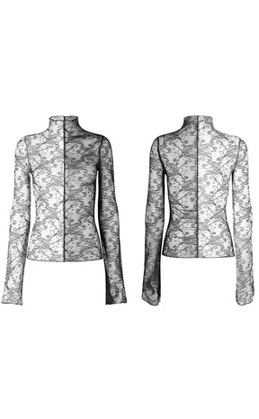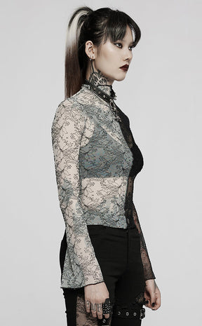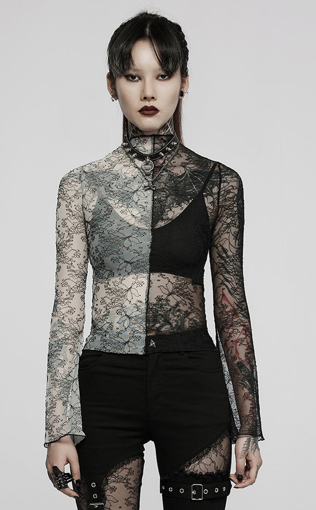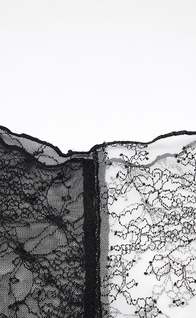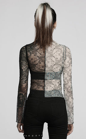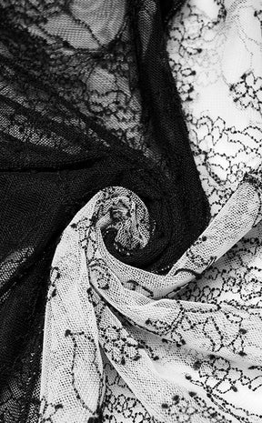 Get the best of both worlds in the Flipside Lace Top. This statement top is split down the middle with a simple yet effective combo of white and black lace, featuring a lightly ruffled high collar and lightly flared sleeves.