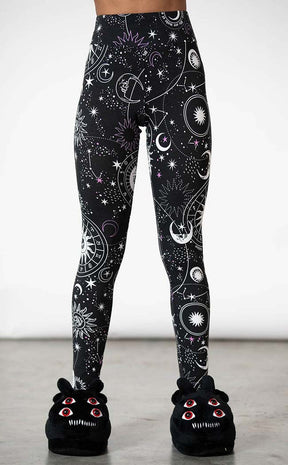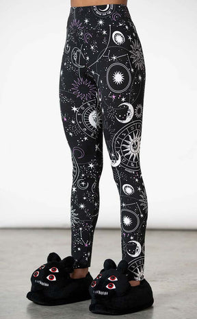 The Galaxy Lounge Leggings will have you snuggling up with the stars! Super soft, stretch fabric is printed with a custom galaxy print, forming a high waist with an elasticated band for the perfect comfort fit.