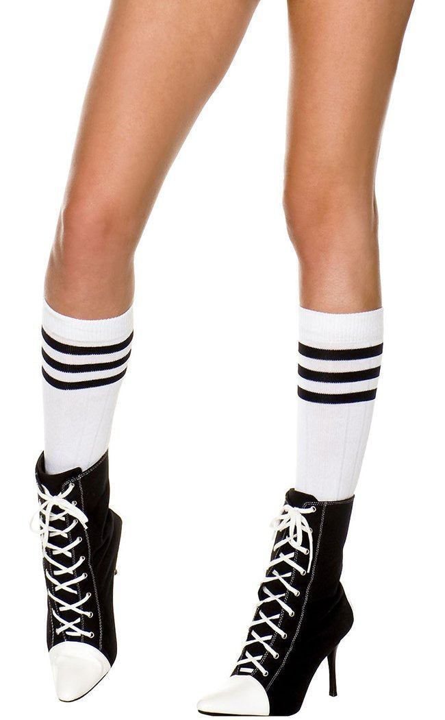 Sporty chic! These knee high socks have contrasting sporty stripes so you can add an athletic flair to any outfit. They're also super warm for those chilly nights out.