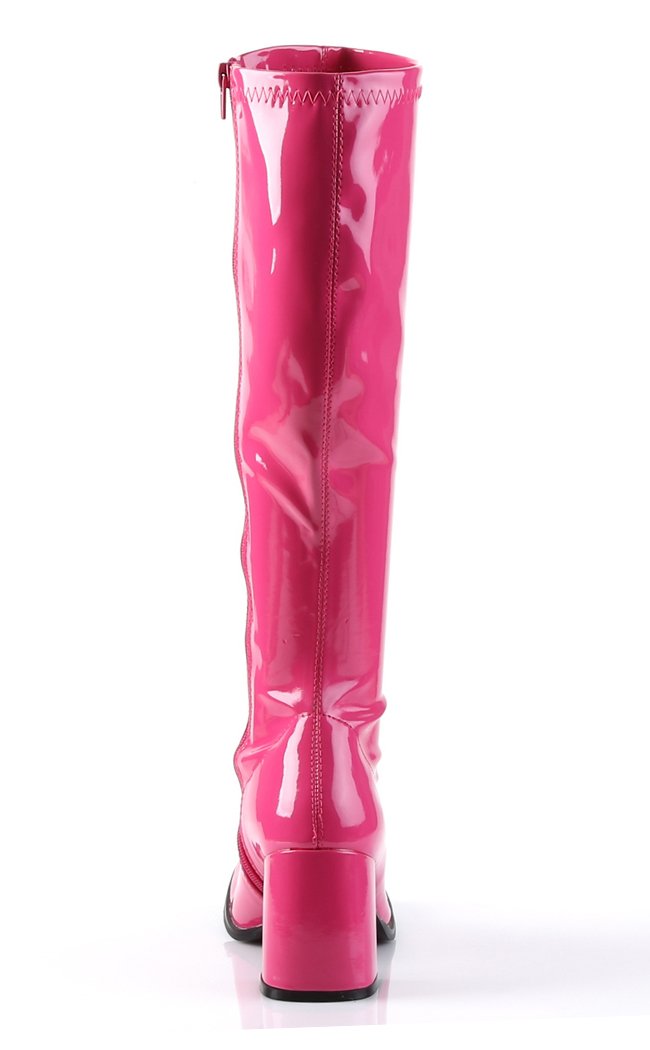 GOGO-300 Hot Pink Stretch Patent Gogo Boots