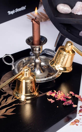 For candle rituals or safely extinguishing candles after a relaxing session bathing in the warm glow of a flame, this delicately curled snuffer is a necessary addition for any practitioner who regularly works with candles.
