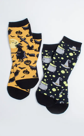Add a spooky touch to your outfit with our witch-themed socks featuring cauldrons and reapers! These socks are a must-have for any Halloween lover or witch enthusiast. Made with high-quality materials, they're comfortable to wear all day long. Don't miss out on the chance to add these fun and super cheesy socks to your collection!