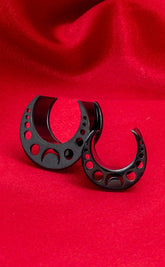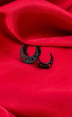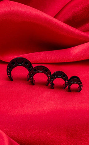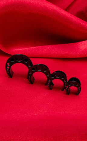 These carefully crafted crescent moon tunnels are at the top of every witches wish list! Forged from stainless steel, these tunnels are a black crescent moon design punctured delicately with the phases of the moon as a simple yet stunning detail.