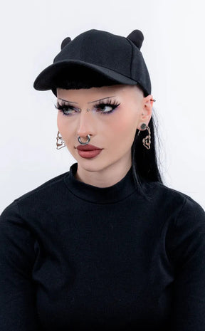 Summer doesn't have to be a bummer when you've got this cool AF hat to wear! This black baseball style cap is the perfect addition to your summer rotation and a statement to boot with devil horns protruding out either side of the cap.
