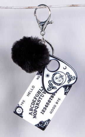 This adorable keychain features a planchette and ouija board as well as a fluffy pom pom for an extra cute touch. It comes with a lobster clasp as well as a classic keyring so you can hang it however you please.