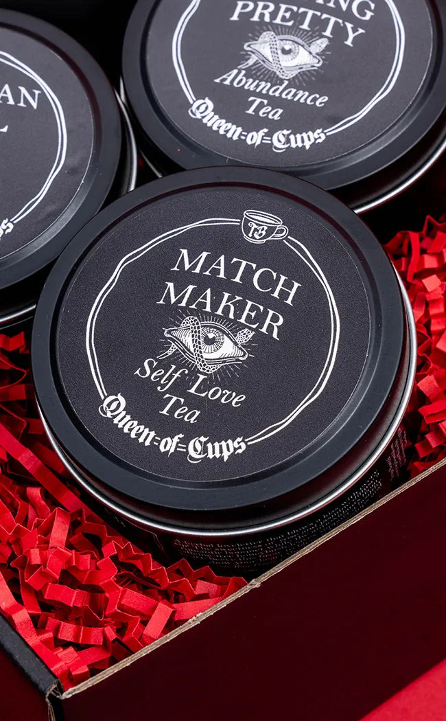3 Mystery Queen Of Cups Tea Tins - Indulge in the warming intentions of our in house hand-blended intention tea, containing a unique mix of herbs to accompany rituals involving anything from dream magick, protection, psychic awakenings and love & relationships.