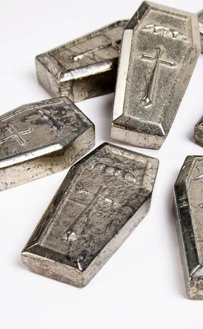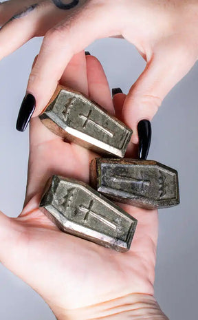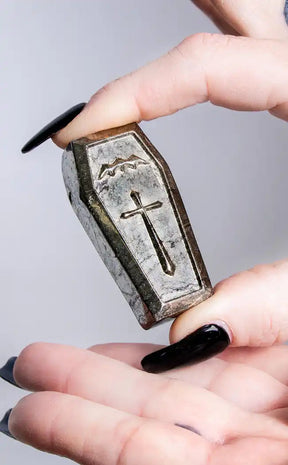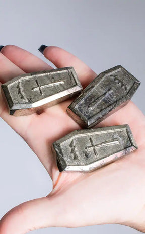 Add to your crystal collection with one of our macabre, glittering crystal coffins. These beautifully polished crystals feature intricately carved details that make for a unique manifestation tool. These coffins are made from Pyrite.