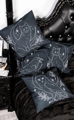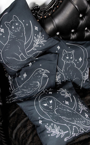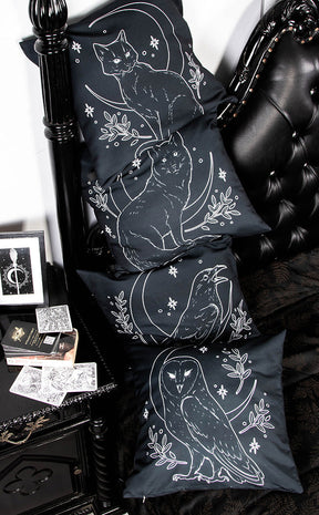 The Witch Familiars Cushion Cover Set comes with each design in the new familiar collection: Athena, Edgar, Midnight and Vixen.