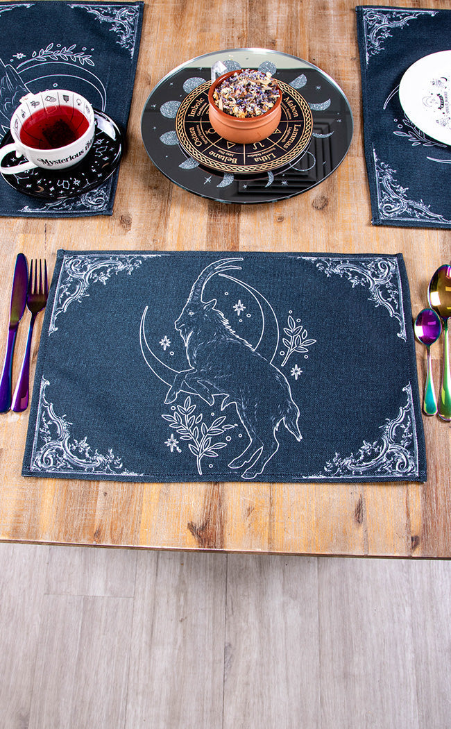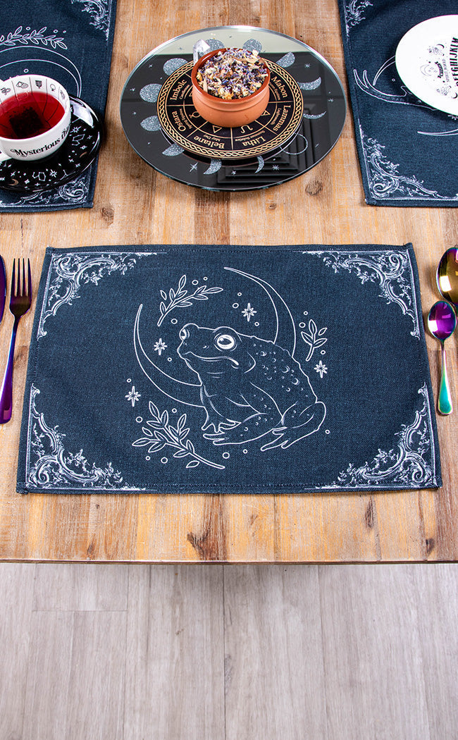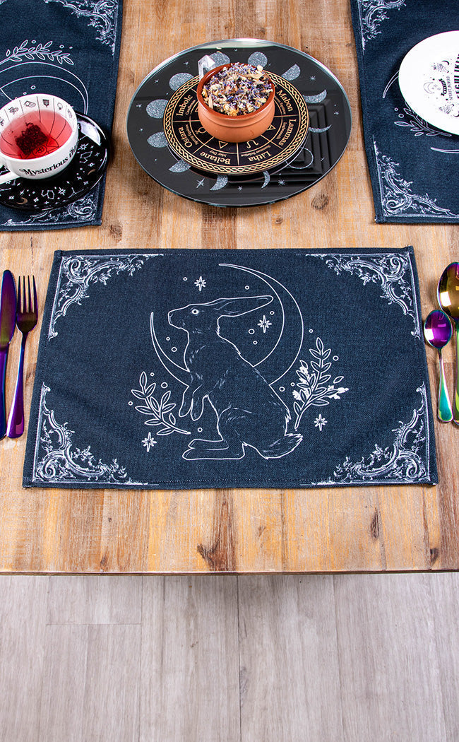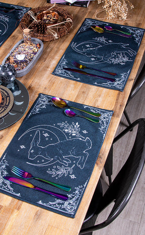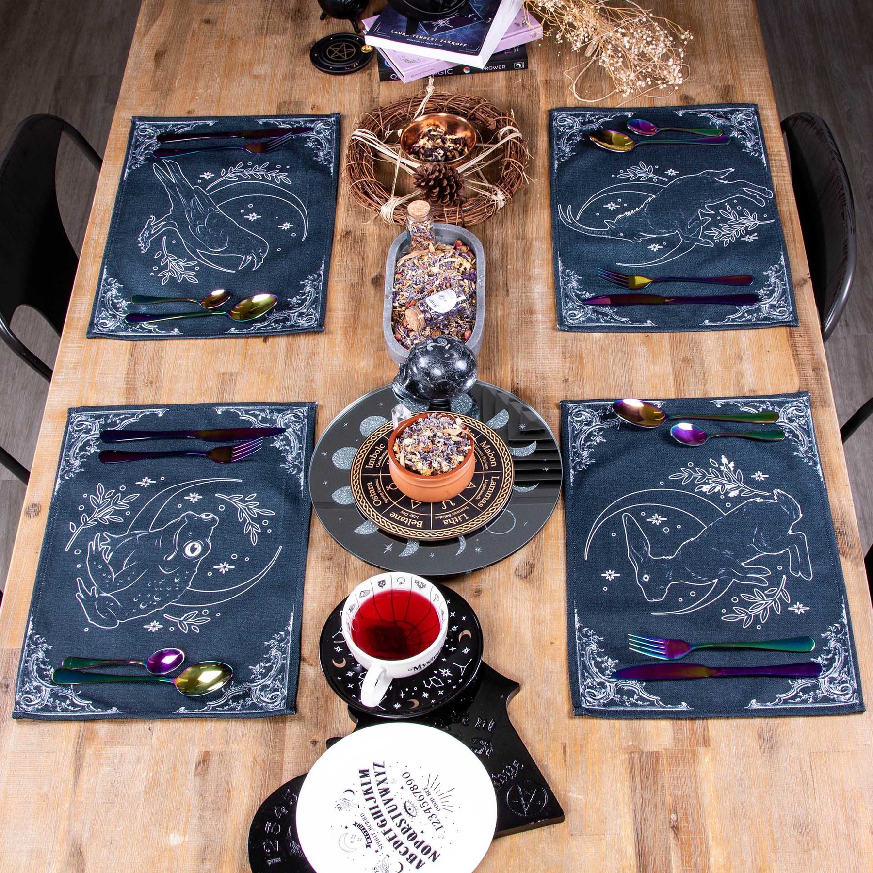 Make your home a magickal menagerie with the Les Familiers Placemat Set! This collection of witchy mats features mischievous creatures who work their magick stealthily in unassuming forms, including a rabbit, a crow, a goat and a frog.