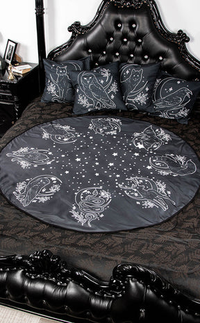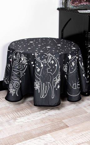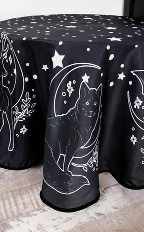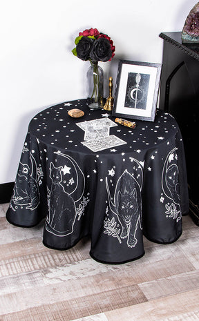 Make your home a magickal menagerie with the Les Familiers Round Tablecloth! Featuring beautiful artwork of witchy animals surrounded by nature, the monochrome colour scheme will look at home in any dining room.