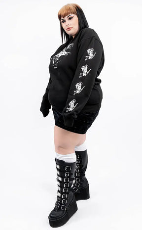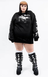 Slip into something sinister with the Let Love Kill You Sweatshirt. This sweatshirt features the original couple of tragedy, Romeo & Juliet, in a sorrowful embrace, with Cupid down the left arm and Tragic down the right arm.