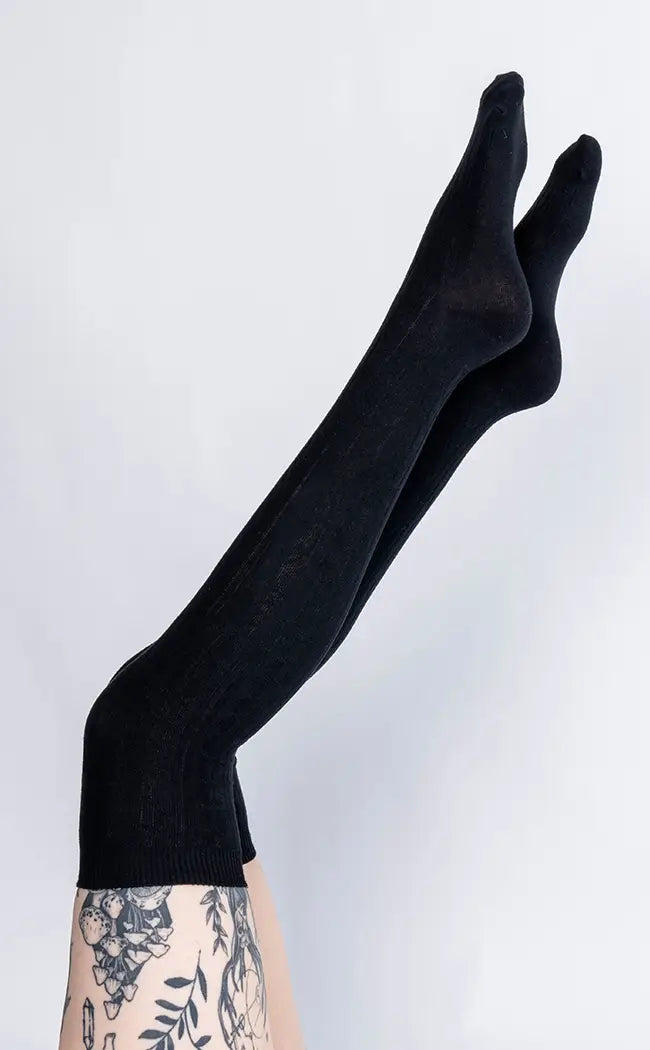 Our Lethal Lust Black Thigh High Socks are the perfect addition to your wardrobe: they go with everything, and they'll have you wanting multiple pairs!