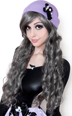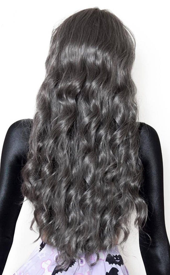 Absolutely gorgeous gothic lolita wig in pewter. Style has loose cascading curls and long, side-swept bangs which can be trimmed or styled to suit your face.