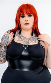 Have them on their knees in the Martyr Leather & Chains Body Harness! Luxe real leather forms a pointed bustier in this harness, topped by chains that snake up the chest and show off your assets to the fullest. Two leather shoulder straps join the chains to help you feel armoured and ready for anything.