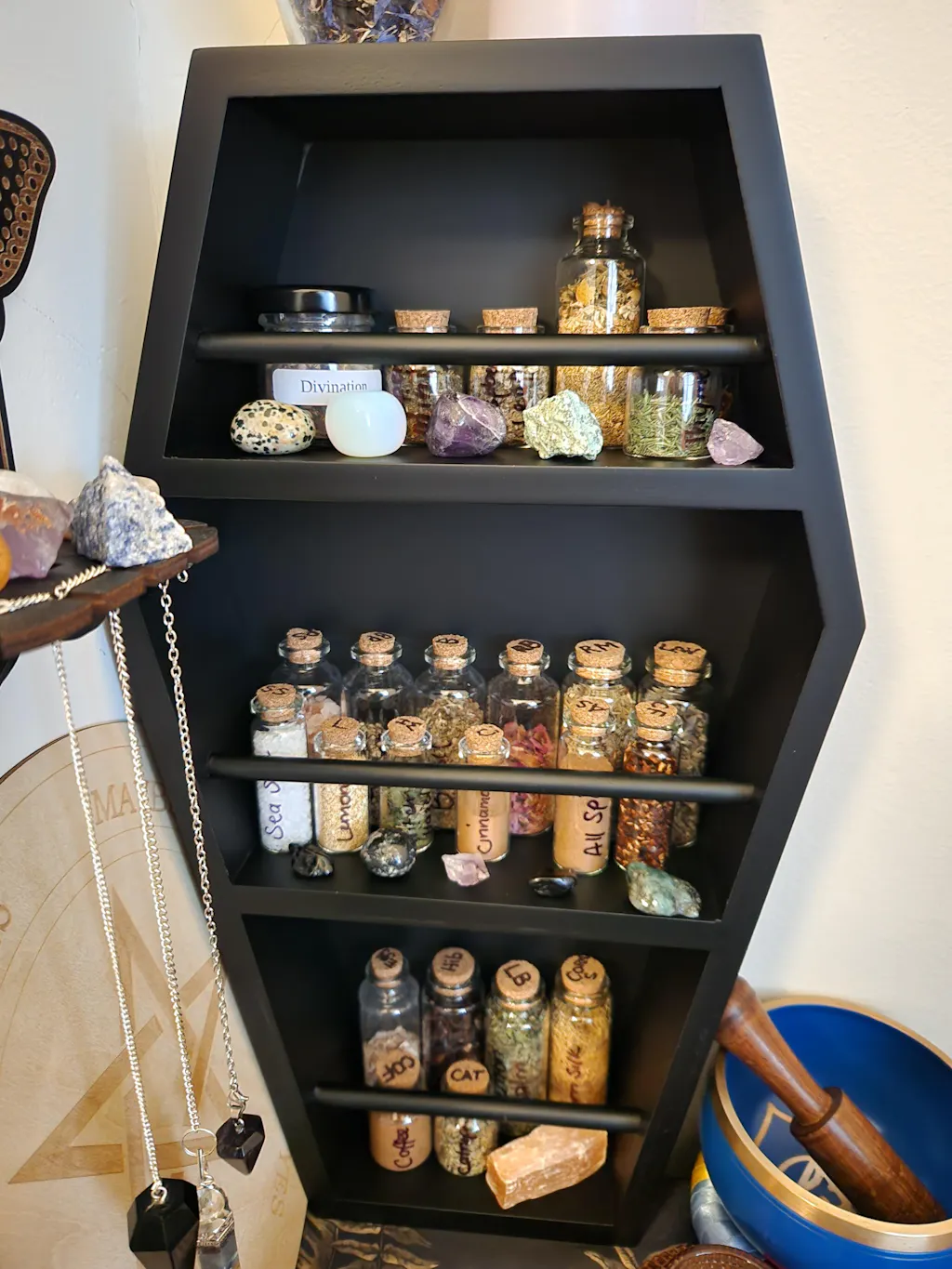 The Mausoleum Organiser isn't just for cosmetics, either. You can also use it to display your kitchen herbs, spell jars, and crystals - we've even utilised it as the perfect gothic mini bar! And with all the hanging hardware included, you can choose to set it up freestanding or hang it on the wall.
