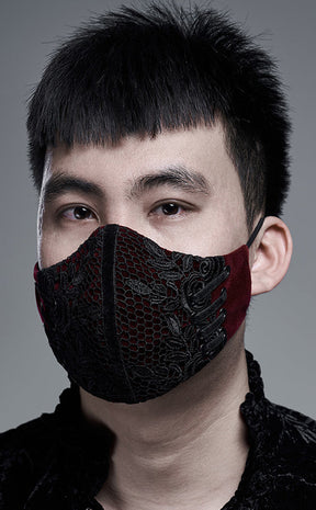 This velvet mas features delicate netting and floral decals as black as your soul. Corseting details on the sides provide a vintage flare for nights when you need to dress up to the nines while staying mask mandate compatible!