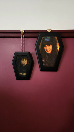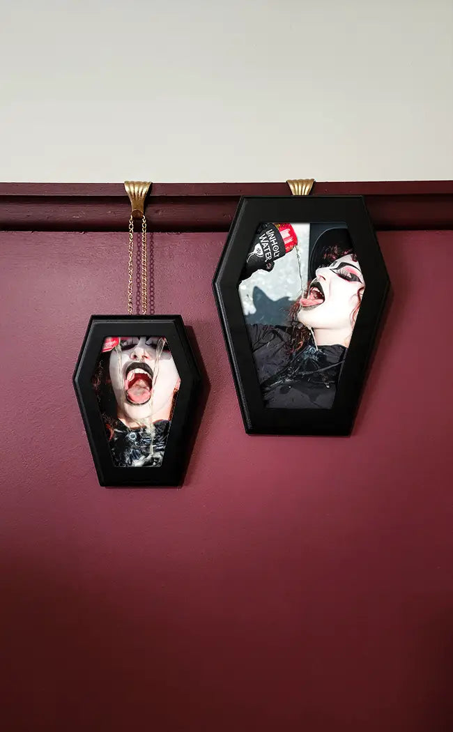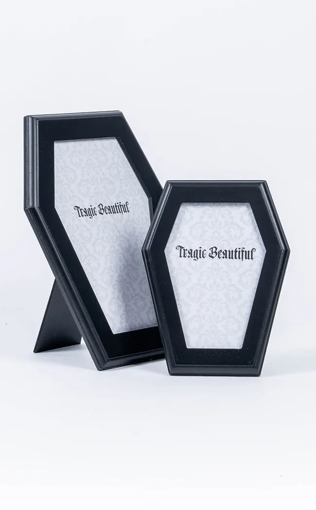 Immortalise your cherished memories with the Memoriam Photo Frames! These gorgeous coffin photo frames are the perfect way to add gothic charm to your home while displaying photos of your loved ones and memories! The coffin photo frames come in two sizes and are perfect for your 6 x 8 inch photos and 4 x 6 inch photos