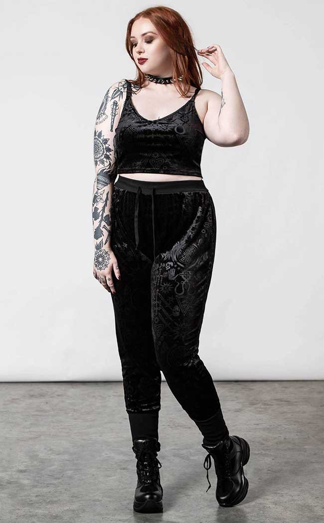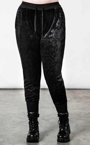 Slip into easy occult style with the Mind Melt Velvet Joggers! An elasticated waistband and cuffs sit snugly on yer bod while the deluxe embossed velvet flows around yer legs in a relaxed fit.