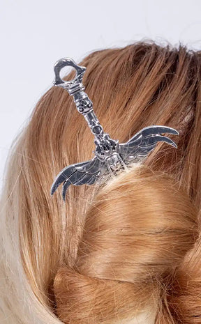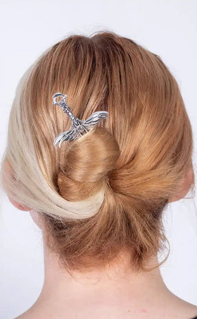 Carry the Goddess of war and wisdom with you wherever you go! This hair stick is incredibly detailed and forms the shape of the Goddess with wings outstretched. The hair stick is made from durable alloy metal which you can use to keep your hair in an easy bun.