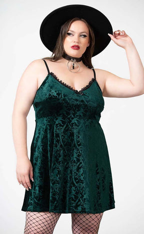 Mistress Of Mayhem Skater Dress | Emerald [Plus-Size]