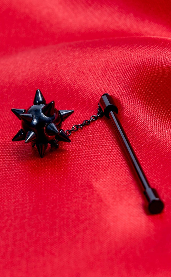 This exquisite barbell is a miniature flail weapon, made from premium surgical steel.
