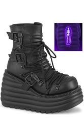 Chunky cyber platform ankle boots with coffin buckles - whether you're heading to your next rave or out on the town with friends, these are the perfect boots to let everyone know you ain't one to be reckoned with!