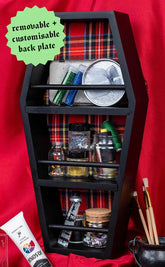 Unleash your dark side with the hauntingly beautiful Mortuary Display Shelf! This gothic black coffin shelf can be the perfect addition to your gothic home.