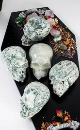 Crystal skulls are a fun way to add a little personality and goth up your crystal collection! Crystal skull carvings are said to be full of information and knowledge as they are keepers of ancient information. Some people think that crystal skulls can be used like crystal balls to see visions of the past, present and future.