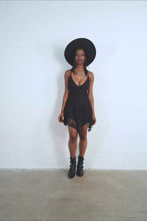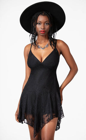 The Moss Flower Lace Dress is the prettiest LBD around! Soft, stretch lace flows over an opaque slip, forming adjustable shoulder straps, a deep V neckline and a hanky hem.