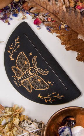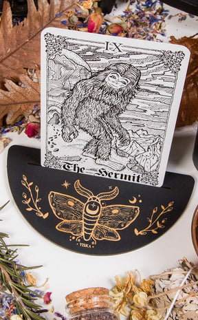Display the cards you pull to help with your divination sessions! This card stand is etched with a beautiful lunar moth and has a slot to hold a single card. Use it to display your "card of the day" on your altar or use when reading the fortunes of others.