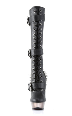 MUERTO-2028 Black & Pewter Skull Knee High Boots