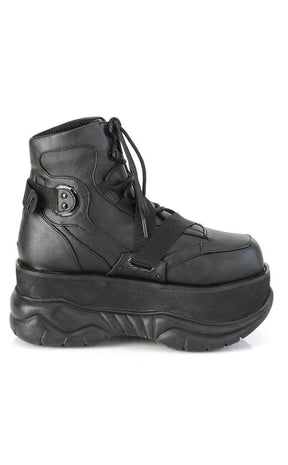 NEPTUNE-181 Black Vegan Leather Platform Ankle Boots
