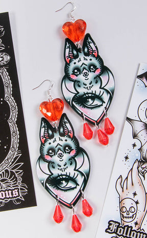 Get a clear view this moonlit night! The Night Vision Chandelier Earrings are the most adorable accessories a vampire could ask for: heart-shaped bats feature piercing eyes on their fluffy tummies, dripping with blood gems and crowned with a matching heart. Add some gothic drama to your look in a snap!