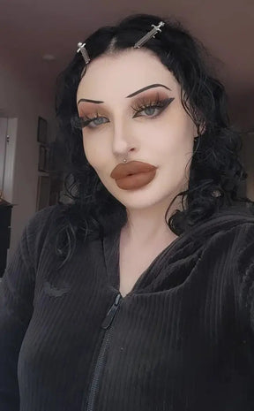 Make a sharp statement with our Nine Knives Hairclip Set! Adorned with a cat at the base of the sword, these statement hairclips will make any look purr-fectly fierce!