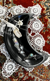 Organise your life with the Nyx Trinket Dish. This sturdy dish is made with sustainable mango wood and shaped after a crescent moon. It's a super versatile home accessory: display your jewellery, crystals and other small items on your dresser or altar.