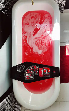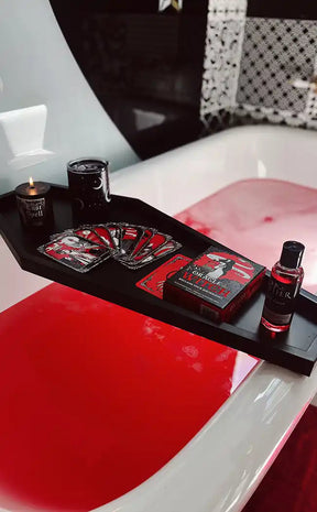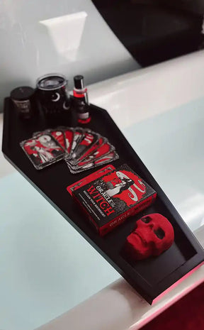 Crafted from sturdy black wood, this bathtub tray is the perfect addition to your bathtime ritual. It's big enough to hold your fave book, a scented candle, and a glass of wine as you rest in peace in the bath. Shaped like a coffin, it features a raised wall around the sides to keep your essentials dry and secure, and is sturdy enough to hold all your bath-time necessities!
