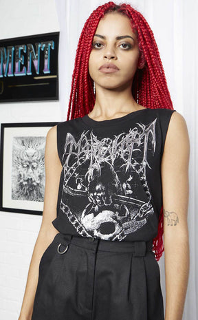 The Pain For Pleasure Cut Off Tank is made with a super soft cotton jersey, making an incredibly comfortable fit with drooped armholes and worn edges. The print is an edgy metal-inspired work of art that you can dress up or down with yer mood.