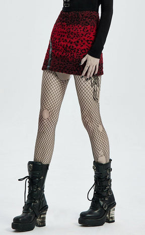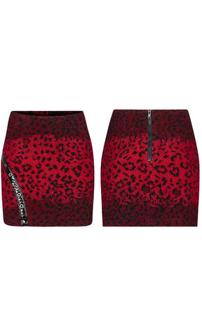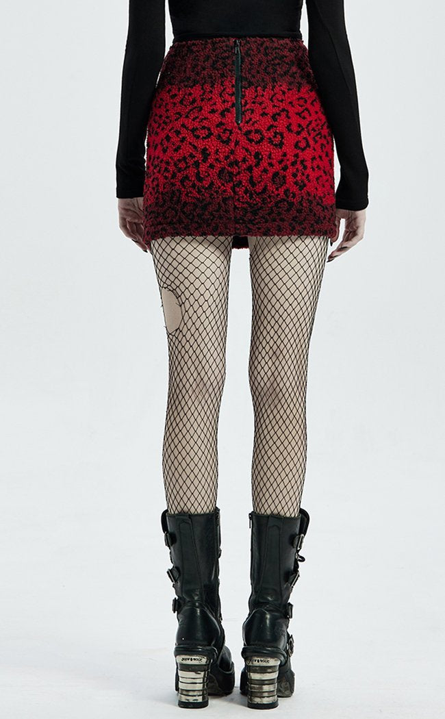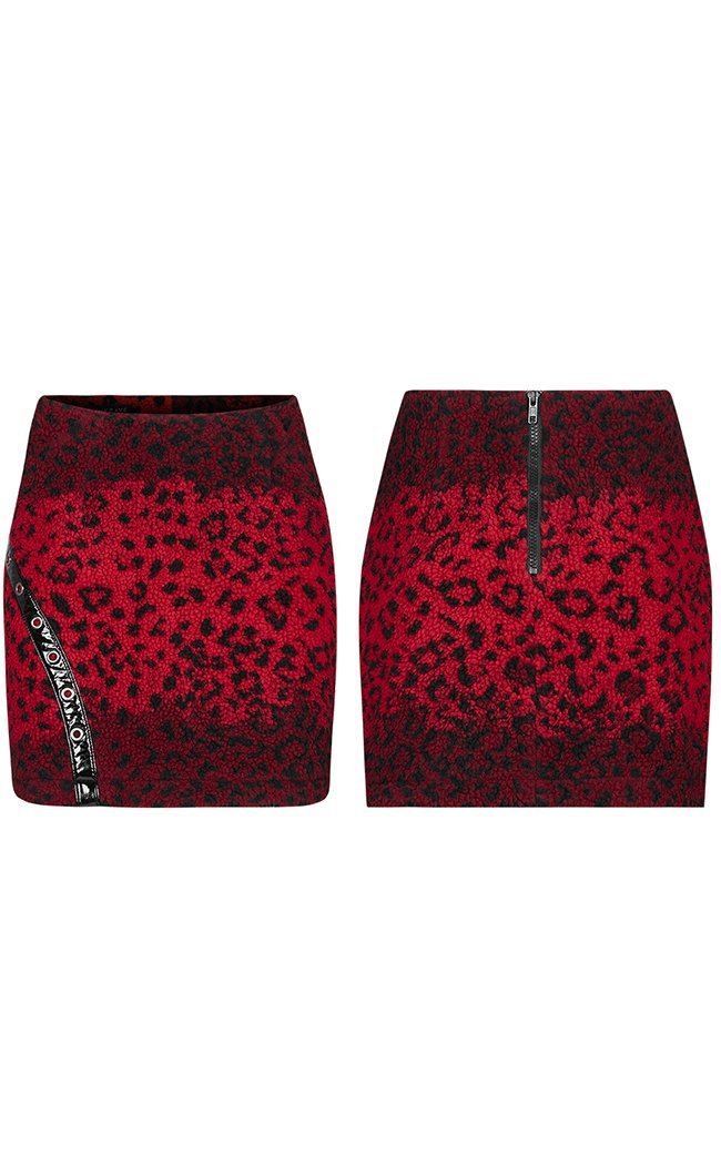 This mini is made of a unique fleece torn straight outta the wild, dripping in blood red leopard print to add texture to your nightlife wardrobe. Faux leather details and rivets bring this baby to the cutting edge and will steal the spotlight, guaranteed.