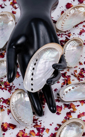 Representing the 'water' element of a 4-element ritual, the abalone shell can be used to catch the ash and embers from your cleansing stick. Rest your cleansing stick on the shell before, during and after your cleansing ritual.