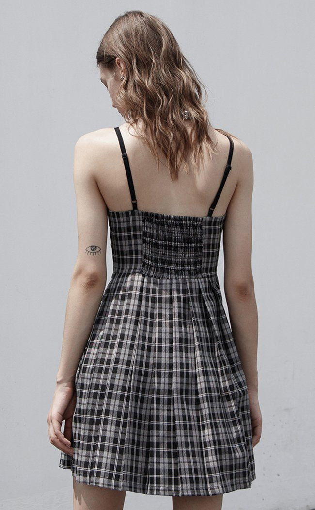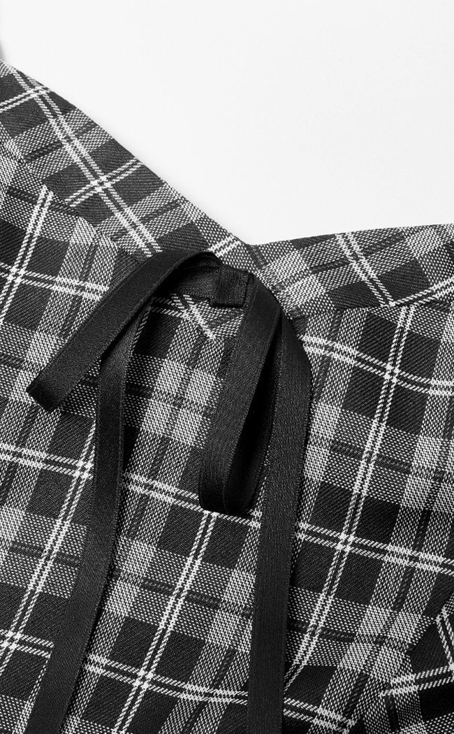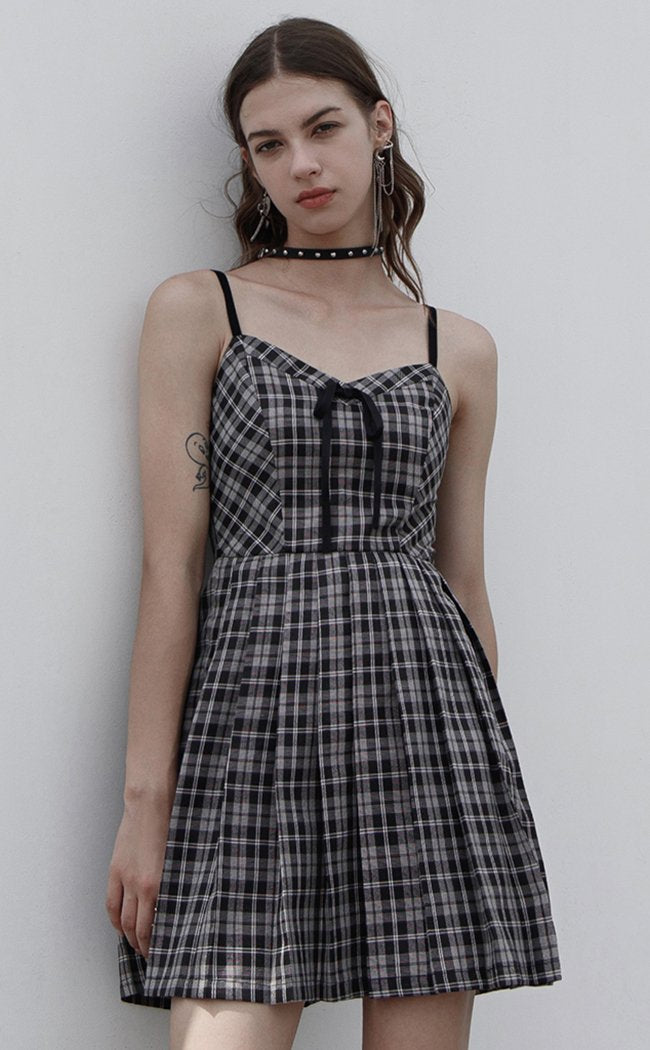 This sweet little dress is goth summer ready! The monochrome plaid creates endless options to match up yer lewks, a sweet ribbon sitting at the chest to make you look as cute as you feel.