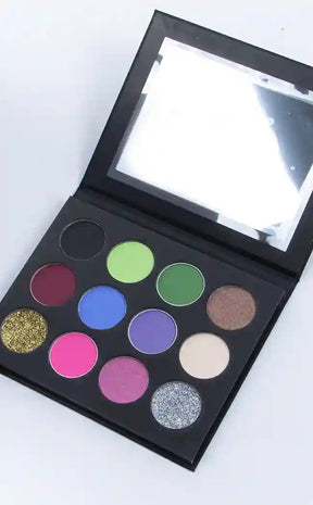 The Play Your Cards Eyeshadow Palette features an ectoplasm-infused colour story featuring 12 spooky shimmers, glitters and mattes that provide pigmented colour payoff in a single swipe.
