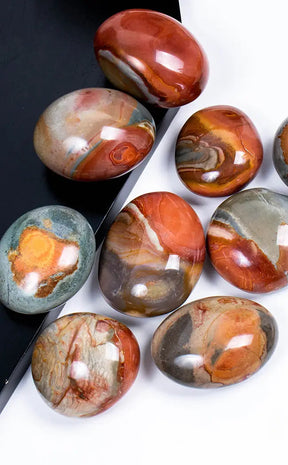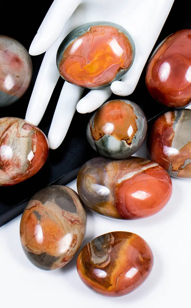 Polychrome Jasper is deeply connected to the fire element. Also known as Desert Jasper, or Picasso Jasper this stone sparks passion, vibrancy, action, creativity, and vitality. Recently discovered in Madagascar, desert jasper is known for its vibrant, and earthy tones.