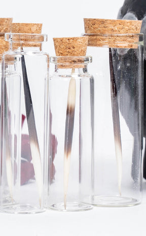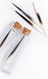 Ethically sourced, natural porcupine quills can be used to inscribe candles for candle magic as well as many other magickal uses. Contained in a glass vial ideal for display or use.