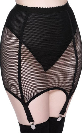 The 'Pussy Power' fishnet skirt is crafted from a super smooth and stretchy fabric, for a flattering fit and ultimate comfort. With an elastic waistband and statement suspenders. The must-have piece for adding drama to your 'fits - looks badass dressed up or down!